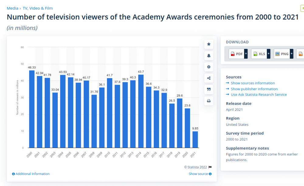 blaabaer Posted March 4, 2022 Posted March 4, 2022 Ci riuscivano benissimo anche senza, eh https://www.statista.com/statistics/253743/academy-awards--number-of-viewers/ Quote